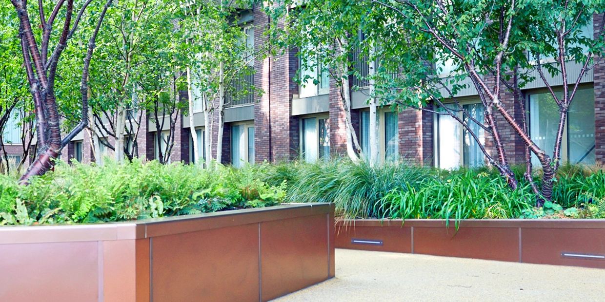 Fixed troughs can be co-ordinated with loose planters, screens, gates and railings as well as in-ground lighting fixtures, drain covers and grilles thus creating a highly streamlined look for corporate, hospitality or residential landscaping.